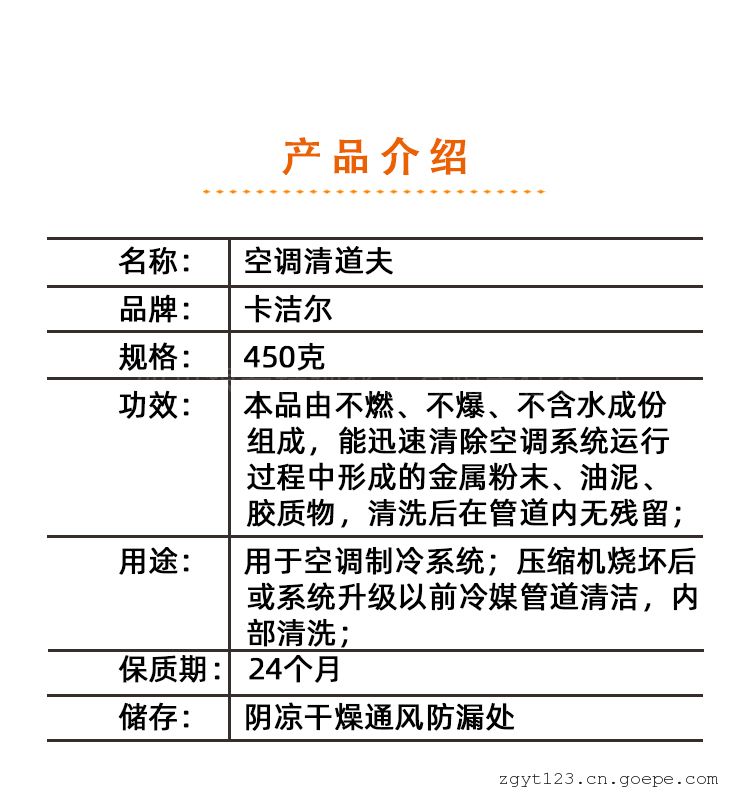 型号:KJR702 香型:无 产品规格:450ml 用途、使用范围:冷媒管道清洁 包装规格:450ml 品牌:卡洁尔 清道夫