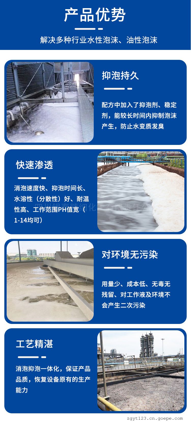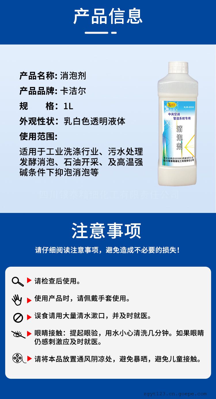 .本产品具有消泡速度快、抑泡时间长、水溶性(分散性)极好、耐温性高、工作范围PH值宽(1-14均可)。
