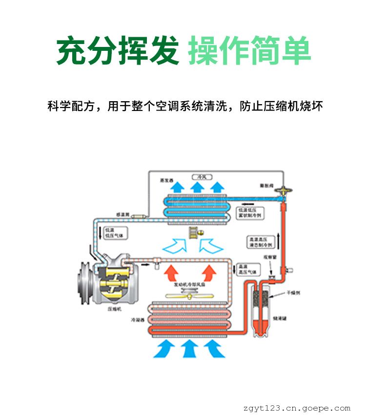 本产品不燃.不爆.不含水份,既能快速彻底清除空调系统运行产生的金属粉末及油污,又能彻底挥发,清洗后使空调系统流通顺畅,避免因金属粉末杂质加剧压缩机磨损,提高热交换效率。减轻压缩机负荷,减少部件损坏,达到*佳制冷效果,是清洁压缩机管道系统必不可少的产品。